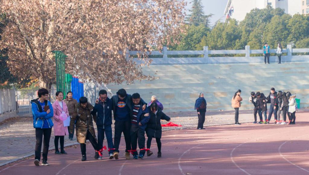 本次活动采取趣味竞赛形式,分为“四海八荒木头人”、“传递正能量”、“五人四足接力赛”、“双面胶”、“三块五抱团游戏”等多个比赛项目,现场竞争激烈,乐趣无穷。比赛中,各个小组的成员们齐心协力,密切配合,争取比赛胜利。在“五人四足接力赛”环节中,有的小组默契配合,喊着口号,迈着整齐的步伐走过跑道;有的步伐混乱,状况百出,但仍不放弃,坚持到底,现场气氛异常活跃。“三块五抱团游戏”环节,大家在紧张愉悦的气氛中,各小组都反应灵敏,配合默契。