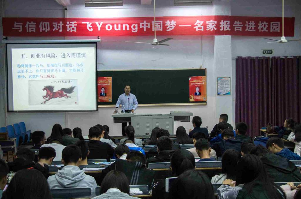 据悉,“与信仰对话,飞Young中国梦”名家报告进校园活动是团中央于2013年5月在全国高校启动的思想政治引领的重点工作项目。该活动旨在通过邀请知名专家学者、领导干部、社会名流等与大学生面对面,谈理想信念,讲中国故事,分享人生经验和体会,激励大学生树立正确的世界观、人生观、价值观,进一步引导青年学生坚定跟党走中国特色社会主道路的理想信念。