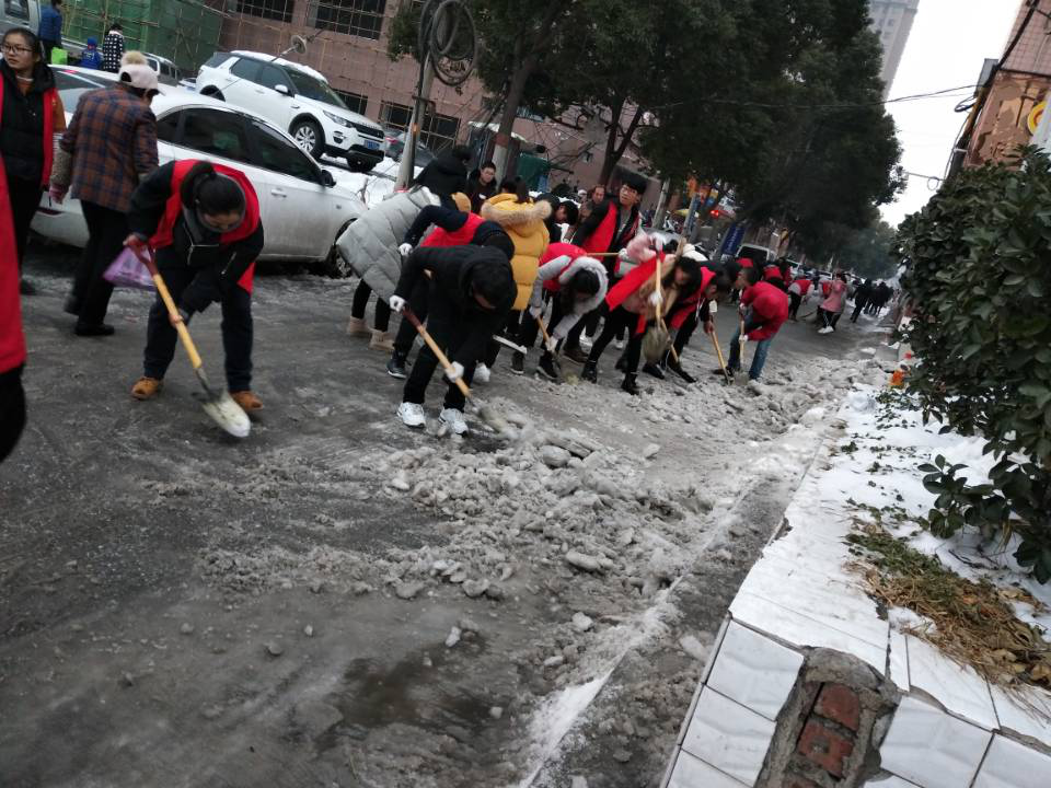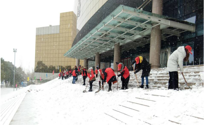 1月4日下午,大学生雷锋营组织了30余名志愿者对我校图书馆前的楼梯上的积雪进行了集中清理,志愿者们拿着铁锹、扫帚等扫雪工具,顶着雪花,冒着严寒,干地热火朝天。1月5日下午,大学生雷锋营组织建筑与城市规划学院雷锋连、外国语学院雷锋连,计算机与信息工程学院雷锋连、生物与化学工程学院雷锋连的100余名志愿者们对齐贤广场、毓秀园及教工二村附近道路上的积雪进行了清扫,大家你铲我扫,一点点地将积雪和冰层铲起来集中堆放。看到志愿者们卖力地清理积雪,行人们纷纷驻足为身穿红马甲的他们“点赞”。