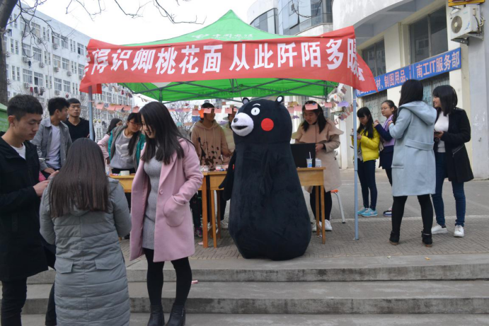 3月,校园里满溢着春意。上午活动由3部分组成,分别是春日暖意、“lucky girl ”“情书我来送”。“春日暖意”活动就是女生把心愿写在“心愿墙”上,随后由工作人员抽取一部分,去实现她们的愿望。“lucky girl ”活动是,当天路过活动现场并穿着“幸运颜色——墨绿色”衣服的女生就成为了“幸运女生”,最终有30名女生成为了幸运女生并得到了玫瑰花和祝福。还有一个活动同时在女生宿舍内悄然进行,“情书我来送”,帮助那些不敢当面表白的同学实现愿望,引来同学们积极踊跃参与。