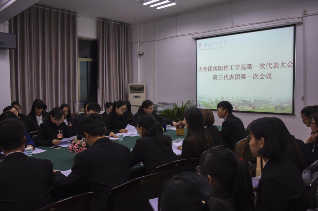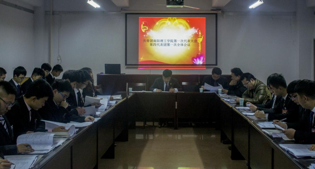 首先各代表团召集人传达召集人会议精神并宣布代表团分团方案,为了大会更有秩序进行,将十七个选举单位选出的194名代表分为四个代表团,并传达高举中国特色社会主义伟大旗帜、引导和鼓励当代青年团组织齐心协力的会议精神。会上推选并通过团长、副团长名单,代表们全票通过并表示欢迎。接着,全体代表讨论了大会主席团建议名单和大会秘书长、副秘书长建议名单。主席团建议名单共计11人,建议由郭兴华担任南阳理工学院第一次代表大会秘书长,由宋弘、高亢担任大会副秘书长,全体代表都表示了认可与支持。最后,大家共同讨论了关于此次大会议程(草案)、代表资格的审查报告(草案)和团费收缴、管理和使用情况(草案)。