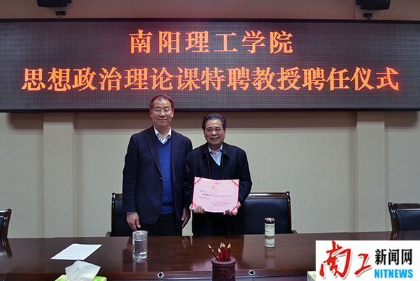 3月30日,我校在会馆第一会议室举行聘任仪式,聘任清华大学马克思主义学院教授吴潜涛为我校思政课特聘教授。仪式上,李宏为吴潜涛颁发聘任证书。