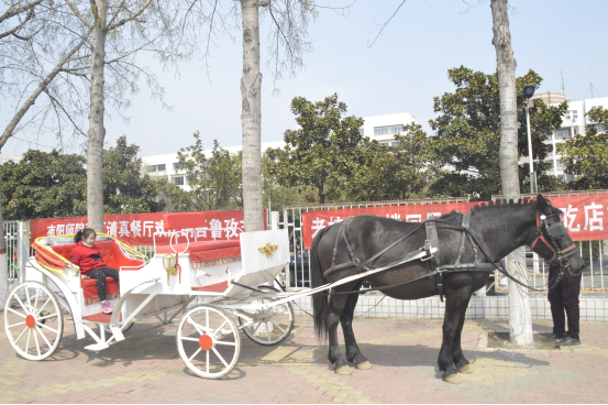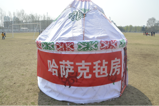 活动中,哈萨克族同学搭建起具有民族特色的哈萨克毡房,为大家提供美味清真食品,还联系了一辆精致马车和两匹健硕骏马,供大家参观、体验。