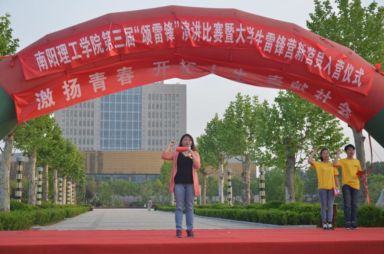 本网讯(学生记者/杨路)为进一步学习和弘扬雷锋精神,促进学生良好行为习惯的形成,进一步推动我院的精神文明建设。4月28日,由共青团南阳理工学院委员会主办、编外大学生雷锋营及各学院雷锋连承办的我校第三届“颂雷锋”演讲比赛暨大学生雷锋营新营员入营仪式于东南校区齐贤广场胜利举办。党委副书记郭建生出席比赛。