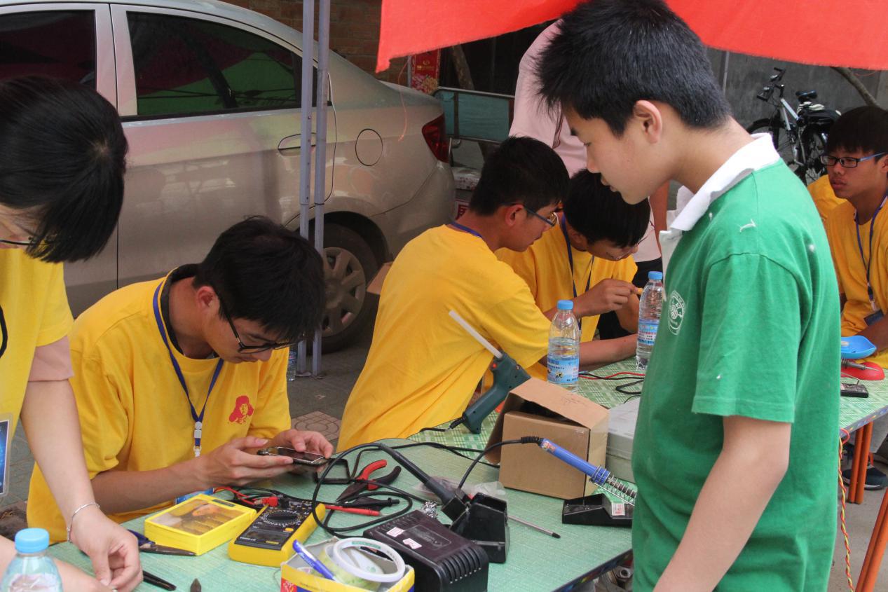 从下午2点半开始,我们的小“雷锋”们就开始为社区中需要帮忙的居民贴心服务。活动主推“阳光爱心义诊”、“家电维修”和“书籍、衣物换换爱”等多个特色项目为居民带来更为全面细致的服务。接受服务的居民带着满意的笑容向志愿者道谢。在近3个多小时的活动中各个服务方阵“战果累累”,经统计有近23人接受爱心义诊,10多台电子产品经过维修处理(包括吹风、台灯、玩具、风扇等)。