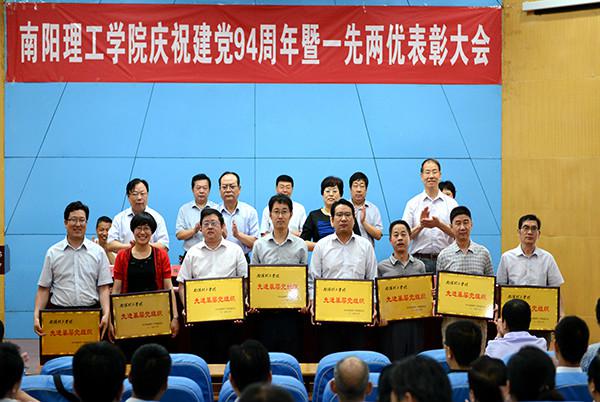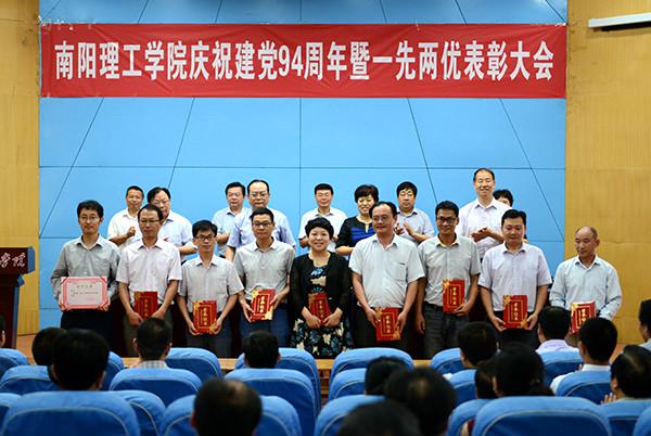 大会在激昂的中华人民共和国国歌《义勇军进行曲》中开始。党委副书记郭建生宣读《中共南阳理工学院委员会关于表彰2014年度先进基层党组织、优秀共产党员和优秀党务工作者的决定》,决定授予党委宣传部党支部、张仲景医学学院教职工党支部等36个党总支、直属党支部和党总支所属党支部“2014 年度先进基层党组织”荣誉称号,授予肖邓华等209名教师和学生“2014 年度优秀共产党员”荣誉称号,授予高芳放等15 名同志“2014 年度优秀党务工作者”荣誉称号。大会向先进集体和个人代表颁发奖牌和荣誉证书。