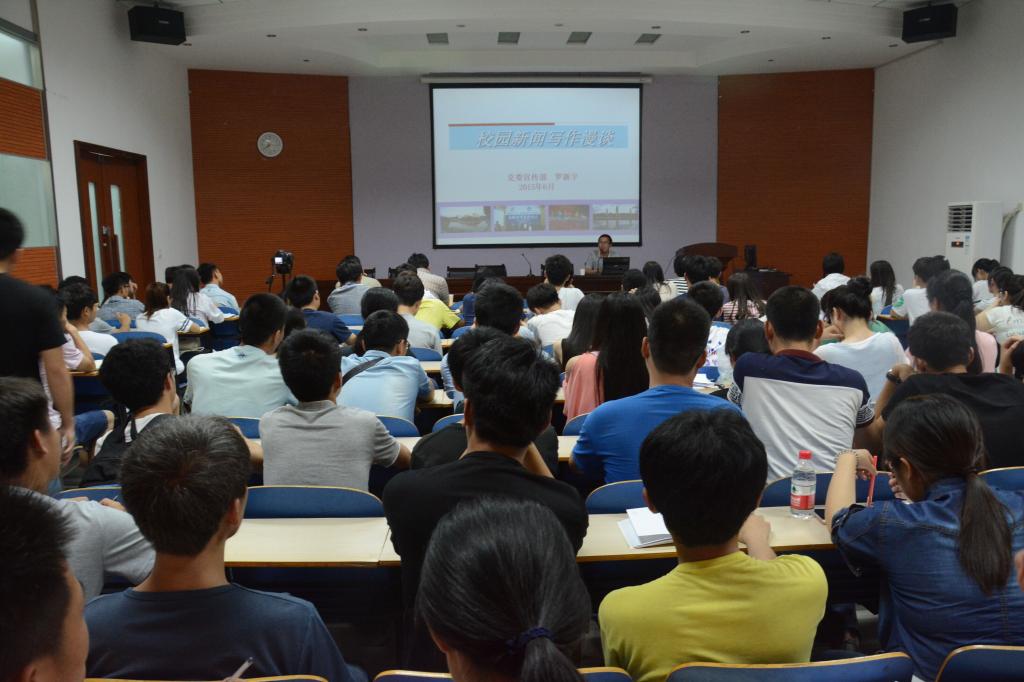 本网讯(记者/段亚楠)6月17日晚,校团委主办的2015年度团属学生干部新闻写作培训会在就业指导中心多功能厅如期举行。团属学生组织宣传骨干及我校暑期社会实践媒体宣传员共计100余人参加了培训。