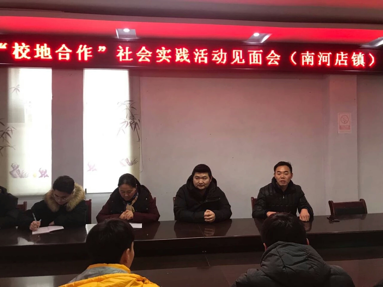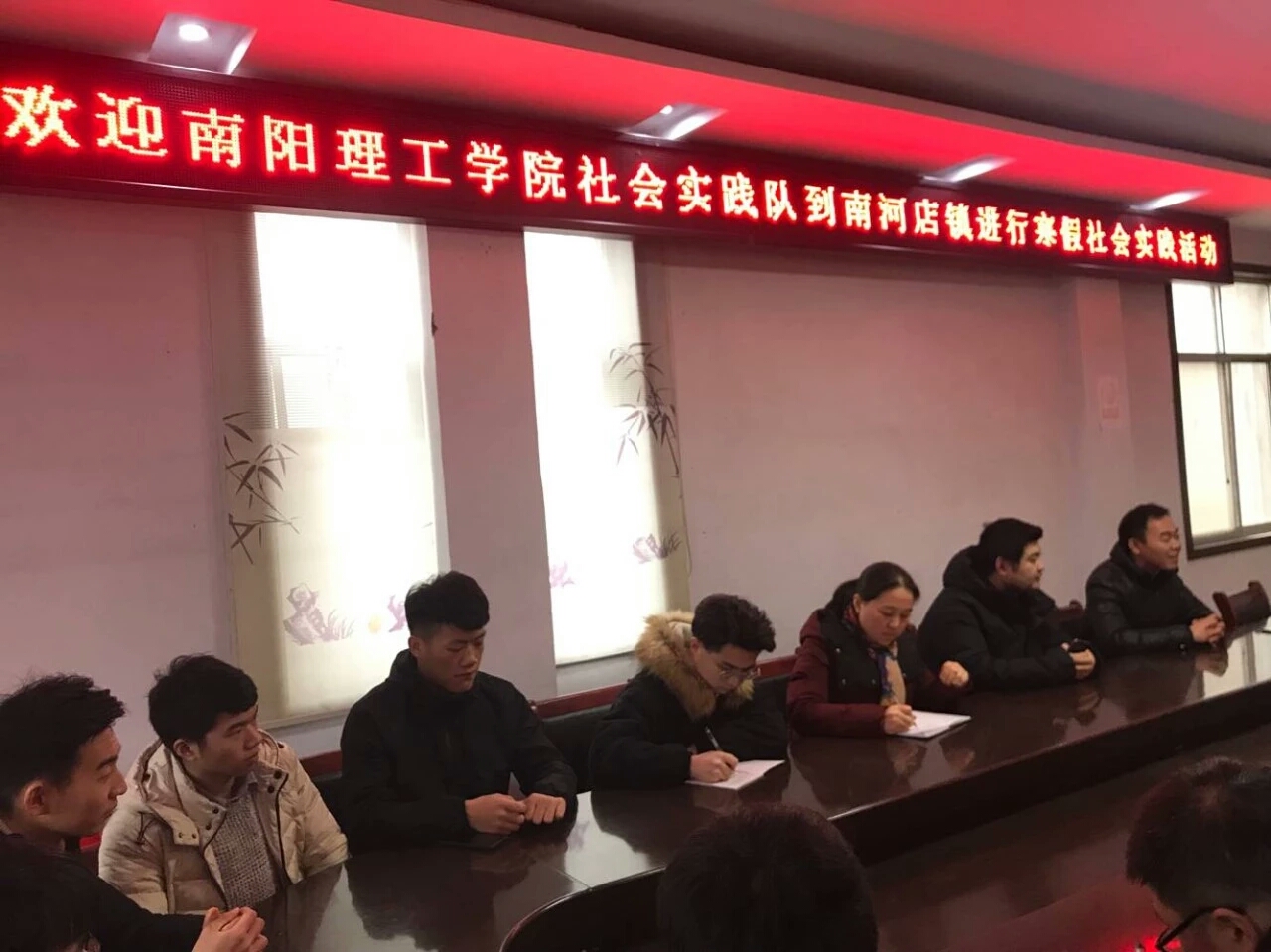 同学们来到南召县南河店镇后,受到了当地政府的领导的接待,并叮嘱到,青年学生干部要到复杂的环境当中去体验,深入到基层实践,深入脱贫攻坚工作的一线,一切行动听指挥,日常社会实践中要注意安全,天冷注意保暖。