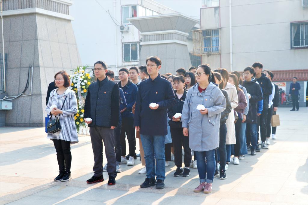 随后,师生们有序近前瞻仰纪念碑,校团委书记康磊引领同学们重温历史,追忆为国献身的铮铮铁骨,感受革命先烈的精神力量。