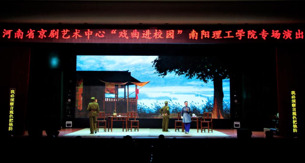 本网迅(特约记者 张洋 学生记者/常梦梦 盖欣雨)为在大学生中弘扬社会主义核心价值观,传承中华优秀传统文化,提升广大学生的审美素养。6月12日,河南省京剧艺术中心在我校毕业大厅进行京剧专场演出。各学院师生及校内外传统戏剧爱好者前来观看本次演出,全场座无虚席。