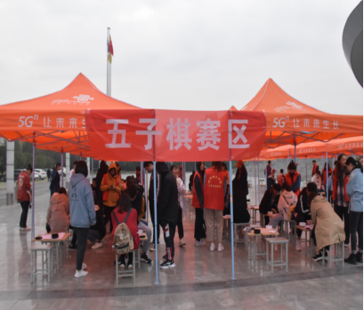 在五子棋赛区,参赛者有条不紊的进行着比赛,观众也认真思索,做到观棋不语。比赛遵循三局两胜的规则,初赛每人进行4轮比赛,获胜者可进入决赛,决赛实行积分制。参赛者都做了充分准备,不时地变换战术和策略。恶劣的天气状况也没能磨灭参赛人员的热情,五子棋对弈如火如荼的进行着。