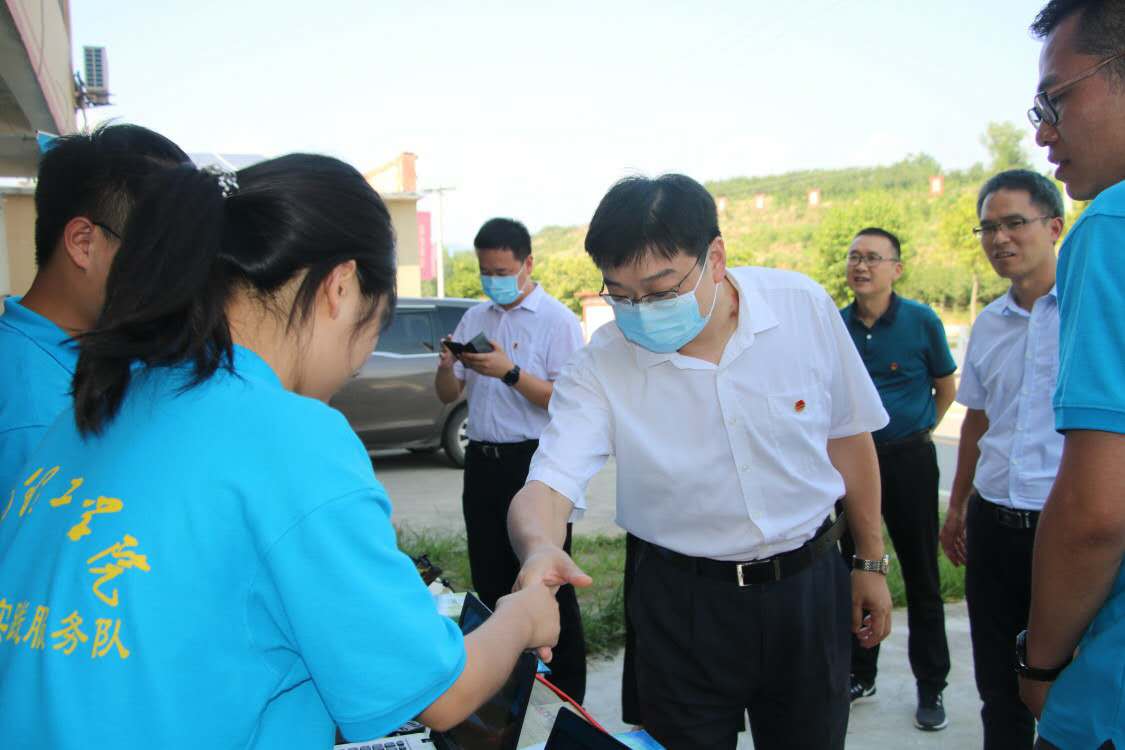 7月29日下午,在内乡进行调研的团中央维护青少年权益部副部长洪亮、团省委青发部副部长周详一行,在内乡县子育村指导我校暑期社会实践工作。