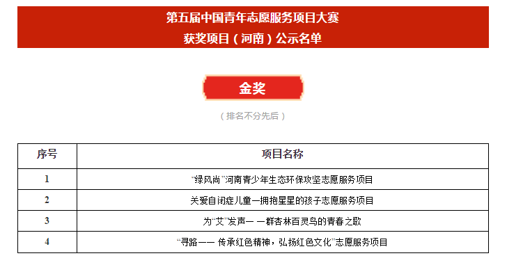 本届大赛由中央文明办、共青团中央、民政部、水利部、生态环境部、国家卫生健康委员会、中国残疾人联合会、中国志愿服务联合会共同主办,大赛涵盖项目路演、项目展示、分享交流等环节。进入全国赛终评的入围项目,采用线上线下相结合的形式进行,通过线上路演、提问交流、集中评审打分等方式,最终评出大赛金、银、铜奖项目,河南省共有4个项目荣获金奖。