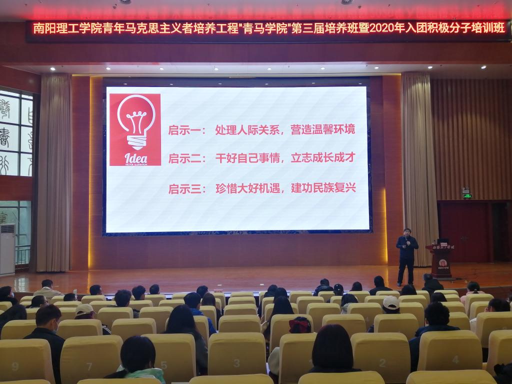 本网讯(特约记者/高亢 学生记者/赵雨露)12月18日下午,校青年马克思主义者培养工程“青马学院”第三届培养班暨2020年入团积极分子培训班在第三学术报告厅举办。校长安士伟出席并授课,校团委全体同志,教学院团委书记、副书记,“青马学院”第三届培养班学员,各教学院“青马学堂”学员代表和2020年入团积极分子参加培训。校团委书记、党委学生工作部副部长郭兴华主持本次活动。