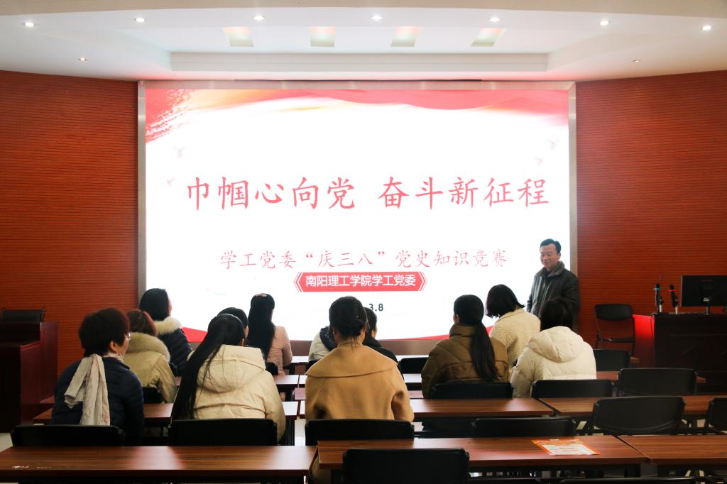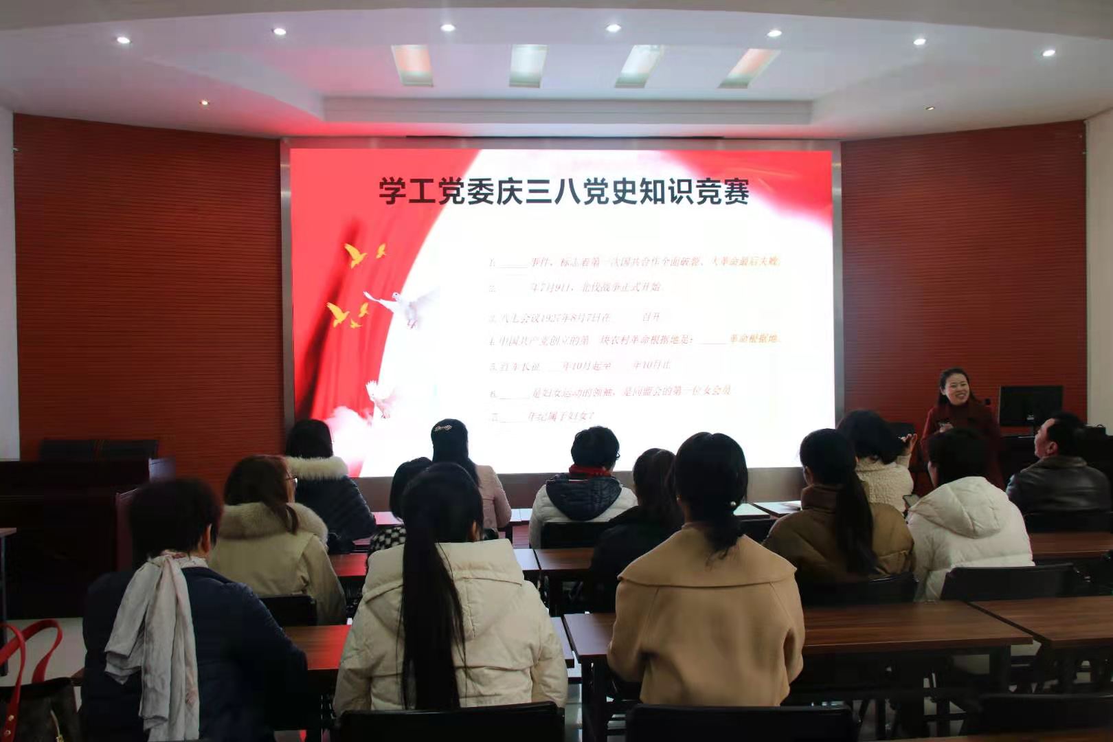 3月8日上午10时,学工分工会举办“巾帼心向党 奋斗新征程”庆祝“三八”妇女节党史知识竞赛活动,为党史学习教育营造氛围,同时给女同胞送上节日的祝福。