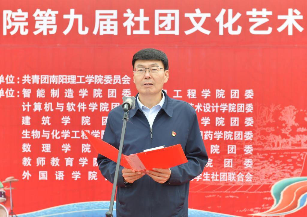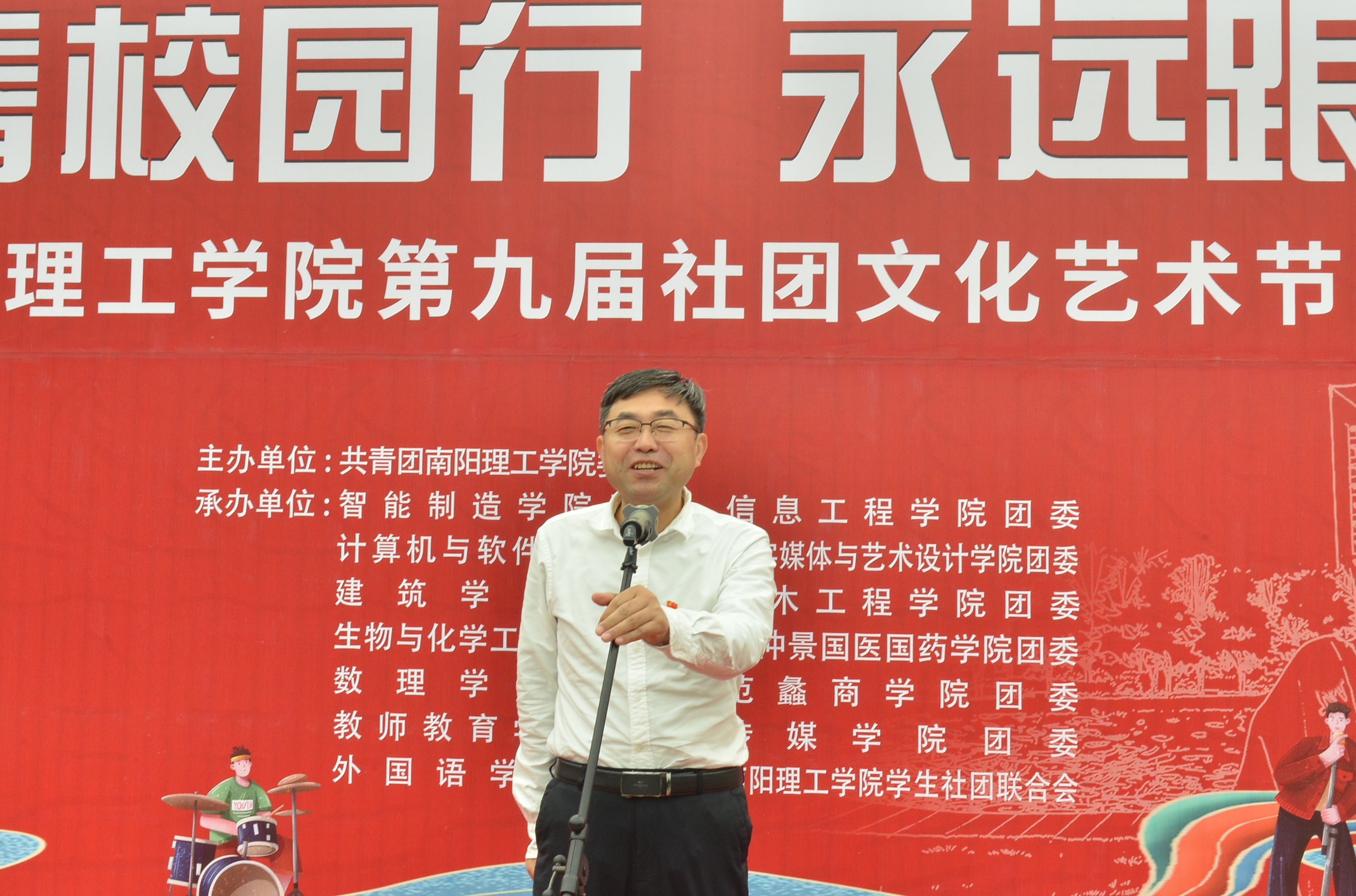 校长安士伟宣布南阳理工学院第九届社团文化节开幕。他在活动中指出学生社团要把学生各方面能力的提高,有机统一地设计在社团活动中,为同学全面成长、成才服务。同时也希望通过加强社团活动,进一步营造健康文明、积极向上、具有个性风格和文化内涵的校园文化氛围,不断丰富活动形式和载体,不断创新社团工作方法和手段,积极开展草根型、原创型、创新型、特色型社团活动,不断探索社团建设和管理的新模式,广泛调动全校广大青年的积极性和参与覆盖面,努力打造一批“专、精、特、新”的精品活动和社团品牌。