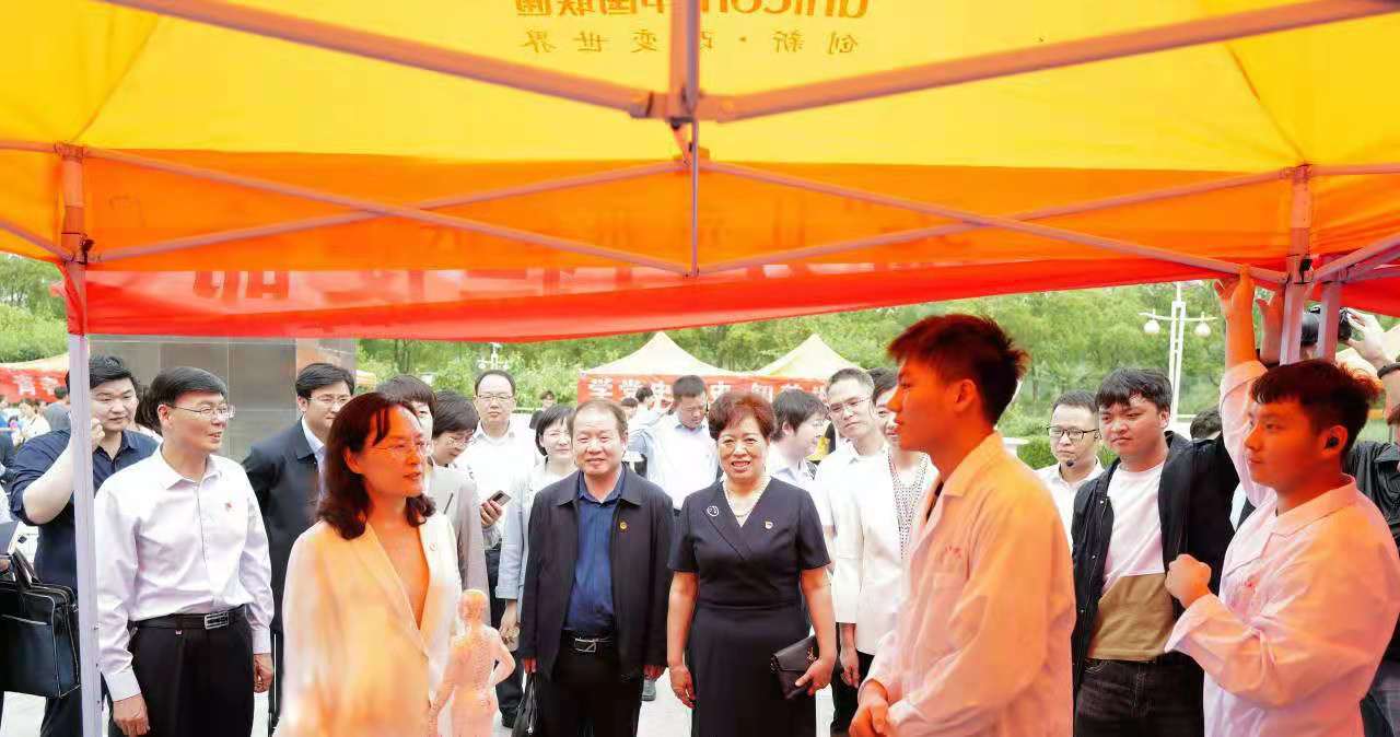 王艺一行到张仲景国医国药学院进行了实地走访,观看了标本馆、医史馆;现场参与我校第九届社团文化节的社团活动,调研指导共青团工作。在仲景文化社团开展活动的现场,王艺同团员青年进行了深入的交流。王艺指出,青年学生要在学习习近平总书记在推进南水北调后续工程高质量发展座谈会上的重要讲话和视察时的重要指示精神上,要学在前、走在前,把总书记的讲话精神转化为学习的动力、创新的动力,中医学子要把总书记强调的中医理论和实践、要守正,在守正的基础上做好创新,在对科学的运用把握之上来创新,把中医事业发扬光大,把张仲景的医德传承好。