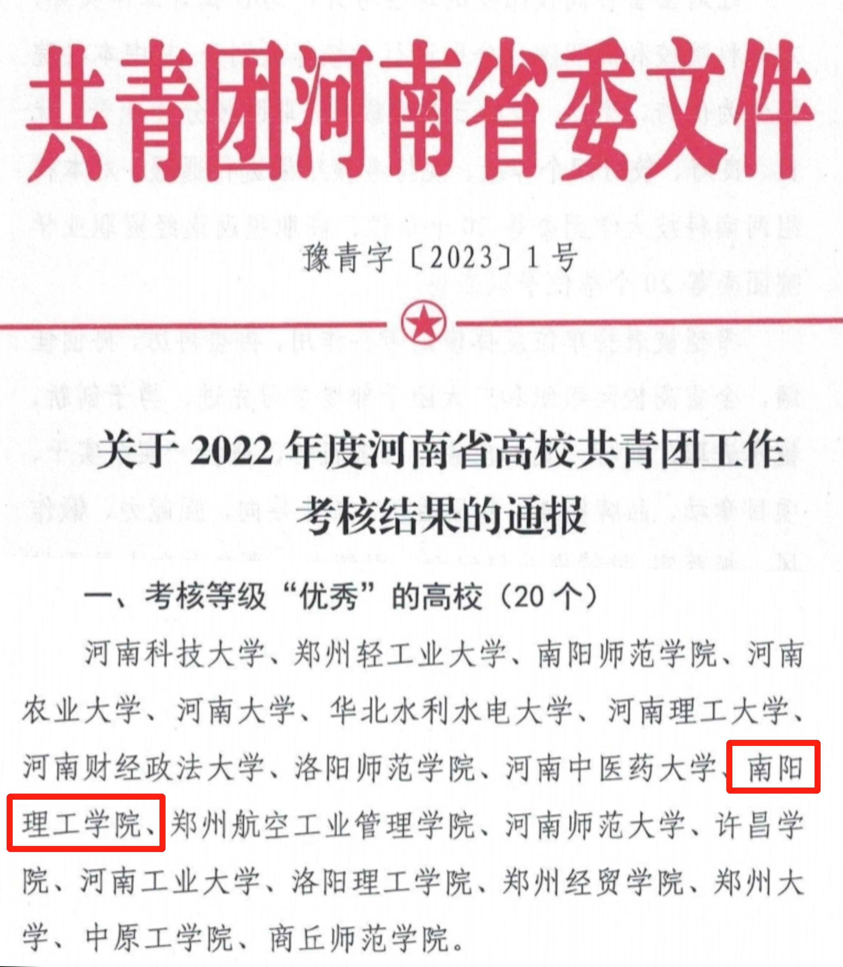 本网讯(特约记者/程斐)近日,从团省委获悉,我校团委在2022年度河南省高校共青团工作考核中被评为“优秀”等次,全省共20所本科高校获评“优秀”,我校位列第11名。