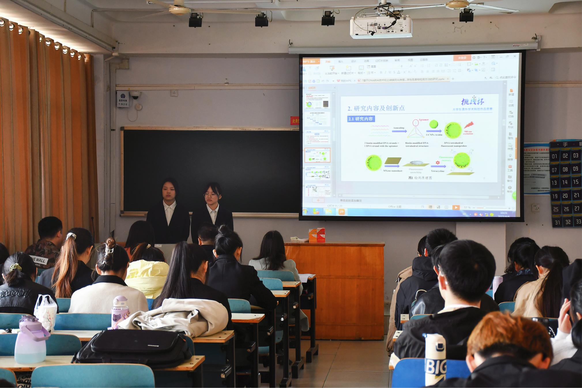 本届竞赛设置自然科学类学术论文、哲学社会科学类调查报告和科技发明制作类作品三个组别,主要考察参赛作品的科学性、先进性和现实意义等方面因素。校团委邀请校内不同专业背景的27名专家老师组成评审组,采用“选手答辩+评委提问”的形式,检验选手对课题的掌握程度、实践能力和实验参与度。提问过后,评委老师也对选手们的作品、课题研究和答辩表现等方面给出个性的建议,引导选手们在PPT制作、语言表达、作品深度、创新立意等方面进行下一步的改进与提升。我校通过三轮评审,最终遴选出参加省赛的优质作品。