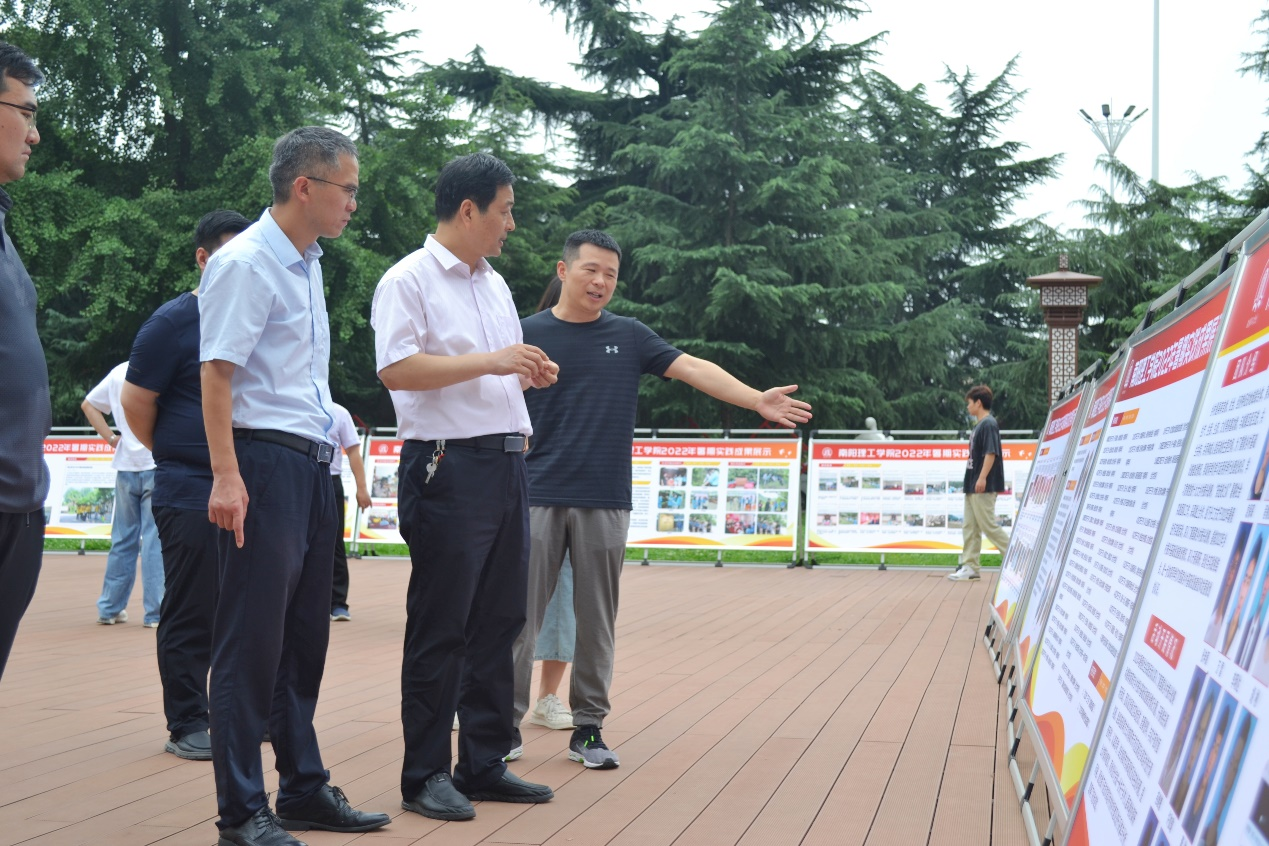 仪式上,董豪作动员讲话,并为各社会实践团队授队旗。他首先肯定了我校近年来暑期“三下乡”社会实践活动取得的成绩,并指出,开展大学生暑期“三下乡”社会实践活动是落实习近平总书记关于青年成长成才重要讲话精神的具体举措,是加强和改进高校思想政治教育的重要途径。他强调,—要知行合一,接地气,在火热实践中担当作为;二要不畏艰苦,增底气,在联系实际中增长才干;三是要发挥才干,扬朝气,在团结奋进中提升成效。来自教师教育学院的王涵老师作为带队教师代表进行了发言,范蠡商学院的张清慈同学和生物与化学工程学院的赵璐耀同学作为实践团队学生代表进行了发言。出征仪式结束后董豪与师生一道实地观看我校2022年社会实践成果展。