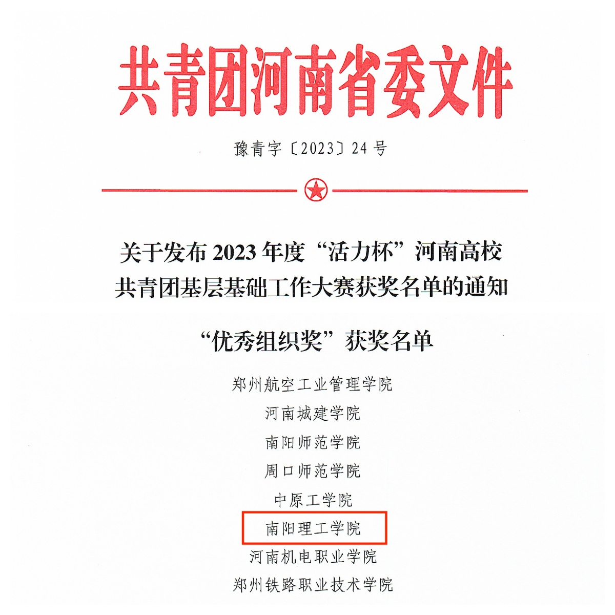 本网讯(学生记者/陈阳)近日,共青团河南省委公布了2023年度“活力杯”河南高校共青团基层基础工作大赛获奖名单。我校共有5项作品获奖,其中实践育人工作项目大赛三等奖2项,3个社团荣获“活力社团”称号,校团委荣获“优秀组织奖”。
