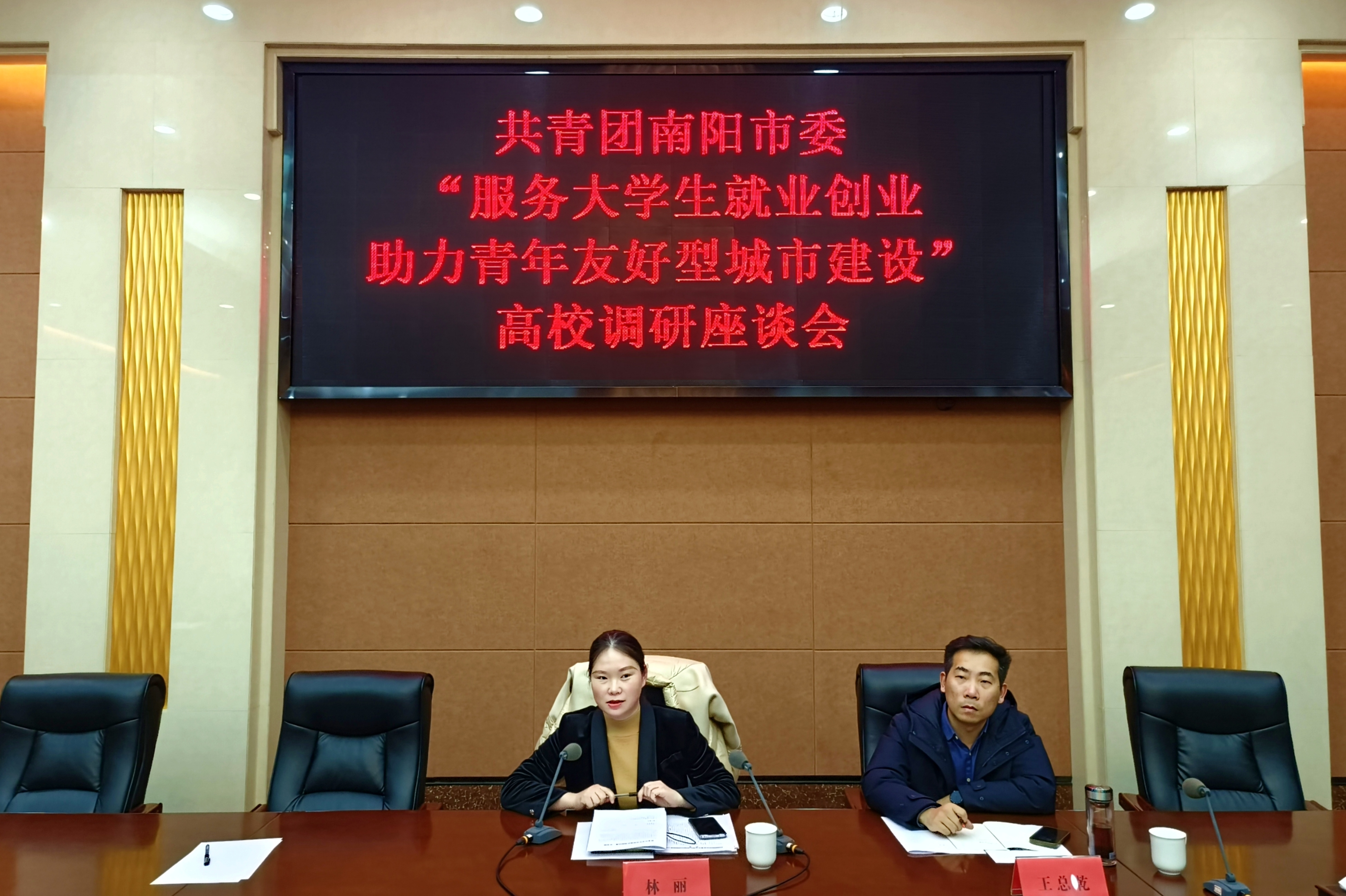 (学生记者/王戬)为深入推进青年友好型城市建设,更好服务在南阳大学生就业创业、留宛发展。1月8日下午,共青团南阳市委“服务大学生就业创业 助力青年友好型城市建设”高校调研座谈会在我校召开。共青团南阳市委副书记林丽、共青团南阳市卧龙区委书记王总乾,南阳师范学院、河南工业职业技术学院、南阳农业职业学院、南阳医学高等专科学校及我校青年教师代表和大学生代表参加座谈。我校团委书记郭兴华、招生就业处副处长李春燕参加座谈,并就我校大学生就业创业工作作专题汇报。