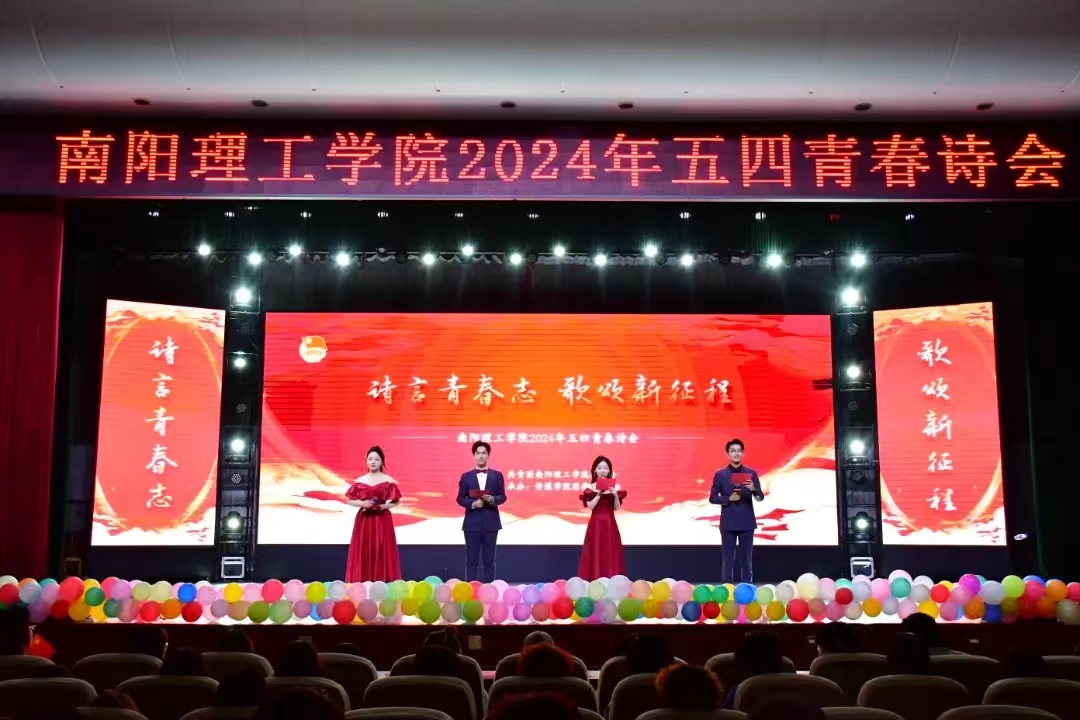 4月28日晚由校团委主办、传媒学院承办的“诗言青春志 歌颂新征程”五四青春诗会在毕业大厅隆重举行。诗会上,青年学子以诗言志、以歌抒怀,用声音传递理想的力量、青春的力量、信念的力量。通过朗诵、演绎等不同形式引导南工青年学子永远跟党走、奋进新征程。