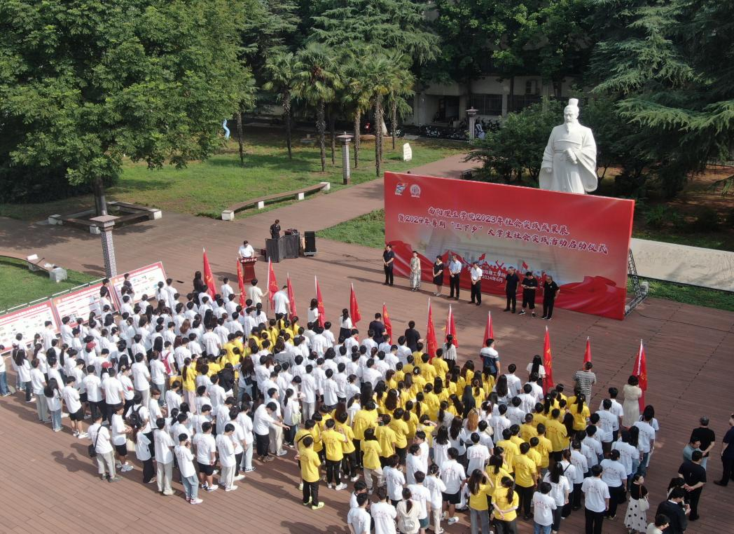 本网讯(特约记者/廖伟迪)6月26日,我校2023年社会实践成果展暨2024年大学生暑期“三下乡”社会实践活动出征仪式在范蠡广场举行。校党委书记安士伟,校党委副书记、工会主席董豪出席,校党委宣传部、统战部、学生处、心理健康教育中心主要负责人,各教学院相关负责人、团委书记及学生代表参加启动仪式,校团委书记白林驰主持仪式。