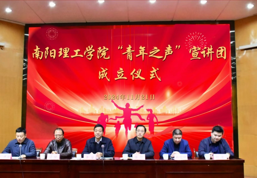 本网讯(学生记者/陈阳)为深入学习贯彻习近平新时代中国特色社会主义思想,提升思想政治教育工作实效,11月21日上午,南阳理工学院“青年之声”宣讲团成立仪式暨首次示范宣讲在第二报告厅圆满落幕。校党委副书记、工会主席董豪,党委组织部部长康磊,宣传部部长逯忆,统战部部长路瑞峰出席本次仪式。各教学院团委书记、团员青年代表参加仪式,活动由校团委主要负责人主持。