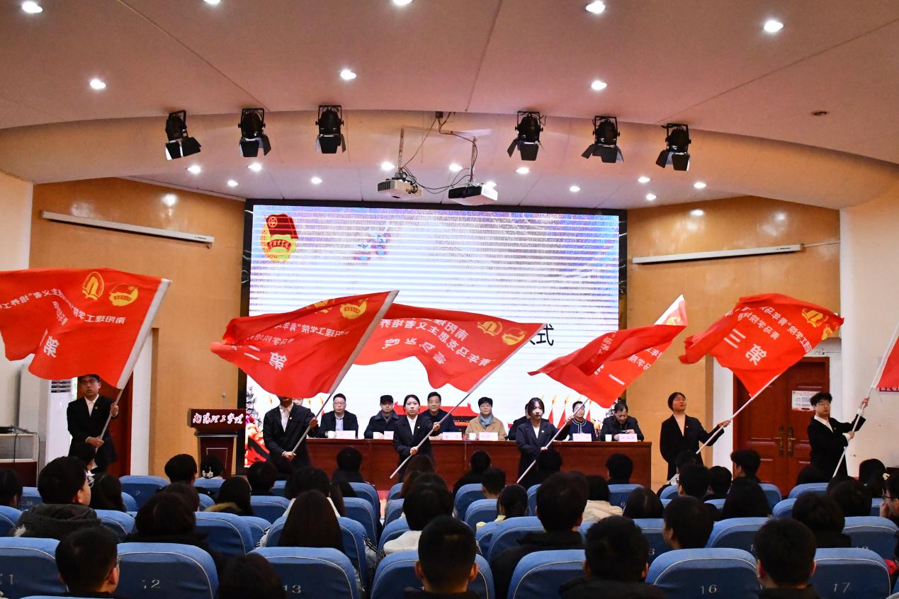 本网讯(学生记者/赵一龙)2024年12月25日,南阳理工学院青马学院第六届结业典礼暨第七届培养班开班仪式在第二报告厅举行。校党委副书记、工会主席董豪出席仪式,党委组织部、党委宣传部、党委统战部、学生处、心理健康教育中心等单位主要负责人参加仪式。校团委全体同志、青马学院第六届、第七届全体学员、学生干部代表共160余人参加活动。