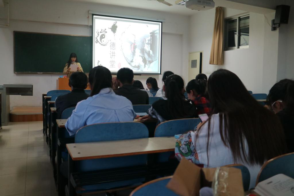 本次道德讲堂活动主要分为两个环节,分别是演讲一篇关于道德的文章和看一个央视道德公益广告。首先由演讲人秦慧洁为在场学生演讲一篇关于道德的文章,来讲解道德的意义和内涵,使学生们对道德有更深层次的认识。活动最后,以一个央视道德公益广告完美收尾。