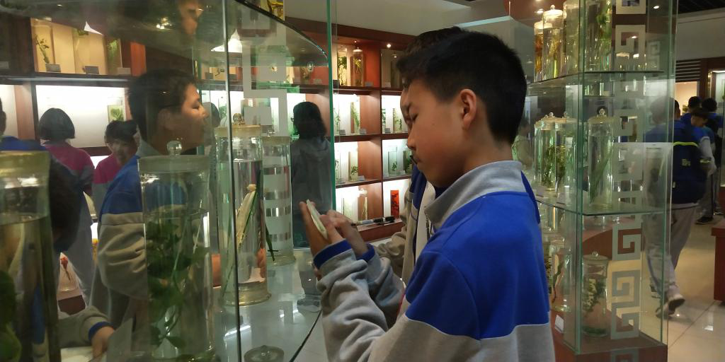 第一站,学生们在药物植物园排队集合,由南阳市实验中学带队老师进行参观前注意事项的讲解。解散后,学生们三五成群在植物园进行参观,他们脸上洋溢着笑容,对各种药用植物表示出好奇。第二站,学生们来到标本室,学生们仔细观察动植物标本,认真记录标本的来历及作用,各种各样的标本极大地增强了他们的学习兴趣。最后,学生们来到医史馆,他们被源远流长的医史文化深深吸引。在学院讲解员的精彩讲解中,学生们亲身感受到中医药文化魅力,一个个都拿起笔和纸认真做起笔记。