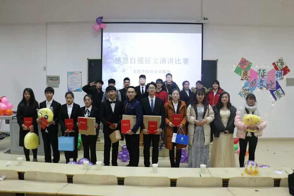 本网讯(特约记者/张梦 学生记者/周畅 陈蓉)12月13日晚,生化学院在7101教室举办感恩自强征文演讲比赛。17级辅导员陈瑞、16级辅导员张梦及近200名学生观看比赛。