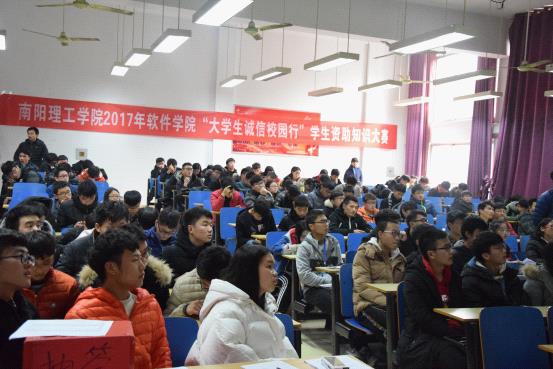 本网讯(学生记者/胡欣茹)12月15号下午2点,南阳理工学院2017年软件学院“大学生诚信校园行”学生资助知识大赛在14教104成功举办。本次大赛由软件学院学生会主办,近百名学生到场参加。