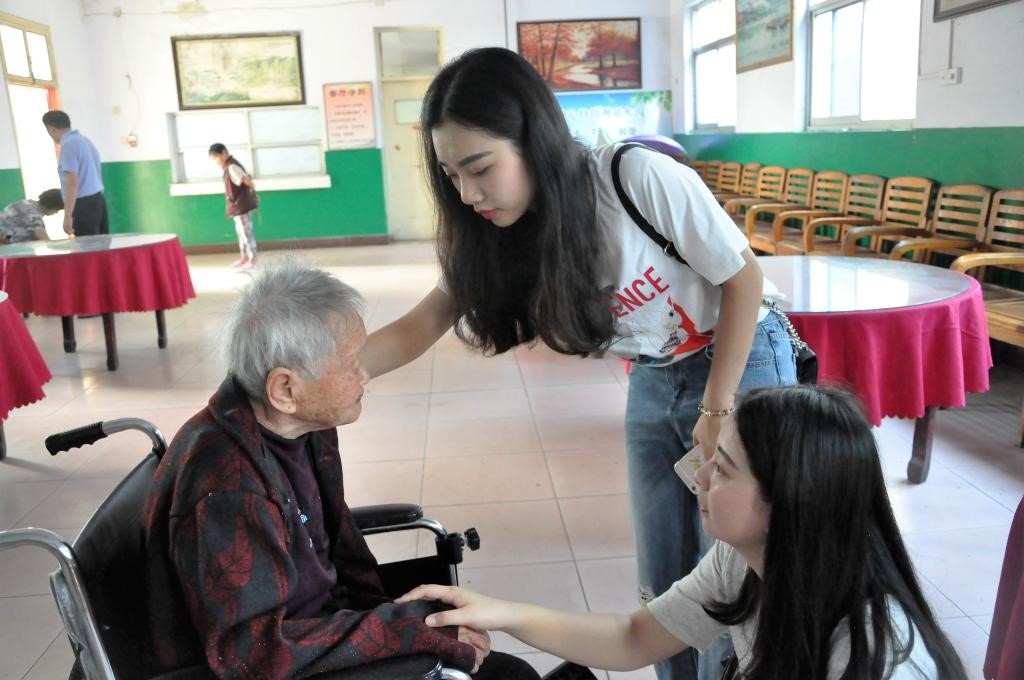 本站讯 (学生记者/ 易丽芳 王蓉蓉)5月21日上午,文法学院2016级播音与主持专业一班的全体同学前往南阳市养老中心探望老人,为老人们带去了水果、粽子、洗漱用品等物资。活动开始,同学们听了养老中心负责领导对每位老人的介绍,和老人们一起唠家常,问寒暖,帮老人打理小事情,有的同学用家乡话聊天,逗得老人们哈哈大笑,气氛十分温馨。接着,同学们进行了精心准备的才艺表演。吉他弹唱《漂洋过海来看你》,动听的嗓音、优美的歌词,老人们不禁击掌附和;朗诵《一棵开花的树》,“当你走近、请你细听”一段心与心的交流,老人们静静倾听遐想。歌曲《请把你的歌带回我的家》、《我只在乎你》唱出了老人们的心中所愿;一首《同桌的你》勾起了老人们对青春的美好记忆,老人们纷纷夸奖同学们的精彩表演给他们带来了快乐。