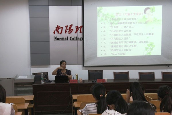 岳亚平教授以“了解儿童 ——有效学前教育的基础”为主题,从“儿童是谁”、“儿童应该是谁”与“教育者应该追随儿童成长的脚步”三个方面侃侃而谈,她认为要提高学前教育的有效性,教育者不应该急功近利,忽视儿童的身心发展特点和规律,而应该把心放在儿童那里,了解儿童的内心世界,掌握儿童的发展规律,尊重儿童的个体差异,挖掘儿童的潜质,促进每一个儿童的最佳发展。提出“对待儿童,教育者应该用牵着蜗牛去散步的方式与儿童的速度同步”的理念,带领同学们走进儿童世界。讲座中,岳教授引经据典,用生动形象的案例,解读了儿童世界与成人世界的不同,台下笑声掌声不断。