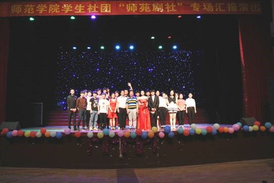 一段活力四射的开场舞为本次演出拉开帷幕;兄弟社团“青春吉他社”带来的歌曲获得了现场观众的阵阵掌声;小品《女人的N次方》,四位演员演绎四种不同的人生,生动诠释了“生活就是这样充满了挫折与希望”。舞蹈南阳版《成都》以别具南阳地方气息的韵味,给现场观众带来不一样的视觉盛宴!荣获学校情景剧大赛一等奖的节目《你陪我长大,我陪你变老》,将人生各个阶段的情形清晰地展现在我们眼前,父母陪伴我们长大,我们陪他们变老!师苑剧社专场演出在现场观众的阵阵掌声中圆满结。