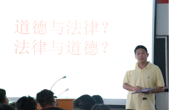 本网讯(学生记者:毋彤 摄影:毋彤)为提高学院学生道德法律意识,大力弘扬法治精神,5月30日晚,生物与化学工程学院在2号楼2609教室举行道德法律知识讲座。主讲人为大二辅导员尹卓然老师。生化学院学生会主席团,各部部长及各年级负责人应邀出席。