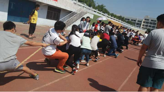 此次活动以拔河和童年游戏的形式开展。各班各自为营分别与其他班级开展了激烈的拔河比赛。“加油,加油……”大家纷纷为自己的班级呐喊助威。“1,2,1,2……”场上参加比赛的同学们整齐地喊着口号,脚下艰难的往胜利的方向移动着。