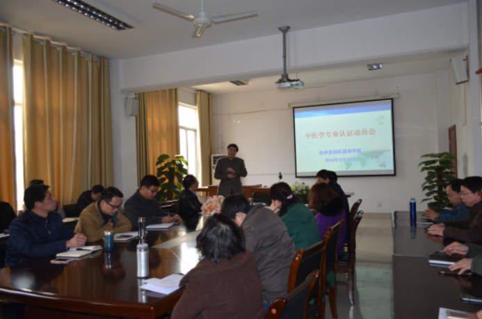 2016年3月15日下午,我院全体教职工在张仲景国医国药学院会议室召开了中医学专业认证动员会,会议由卞华院长亲自主持并作报告,主要内容包括:一、专业认证的意义;二、认证与评估的区别;三、专业认证的程序;四、中医专业认证的依据;五、如何做好专业认证;他最后号召全体教职工牢固树立“以学生为中心”的教育理念,要以认真严肃的态度,积极主动的工作热情去迎接此次认证,做到思想上同心,目标上同向,行动上同步。同时卞院长提出了“以中医学专业认证为契机,全面推动内涵建设”的指导思想。