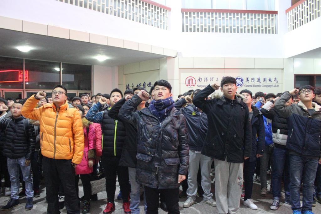 本网讯(学生记者/李艳涛 王昆宁)为进一步营造积极向上的良好氛围,培养学生明礼自律、文明向上的优良品质,12月22日,电子与电气工程学院在教学楼大厅举行“明礼自律”十项承诺宣誓活动。2015级全体学生参加此次活动。