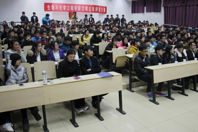 本网讯(学生记者/陈颖)12月8日,为响应“明德修身”系列活动的号召,生物与化学工程学院在7#101教室进行了文明之星评选比赛。由主席团成员担任评委,各部部长以及学通社成员应邀出席了此次比赛。