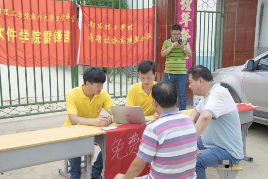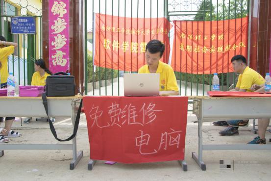 本网讯(学生记者/乔通)7月5日,软件学院暑期社会实践服务队在小史店镇街头设立电脑免费维修点,为广大居民维修电脑,受到当地居民一致好评。