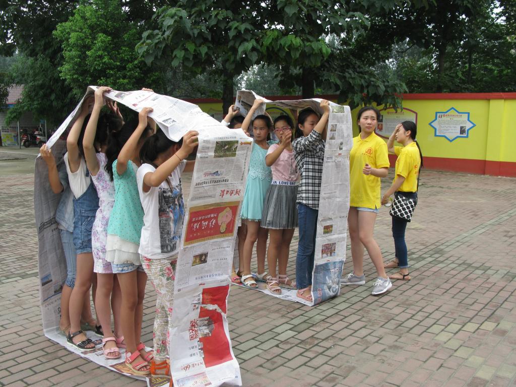 本网讯(学生记者/胡春晓 陈飞)2015年7月2日,南阳理工学院教育学院暑期社会实践服务队同小学生们做了户外小游戏“无敌风火轮”。通过活动,小朋友们得到了游戏的快乐,学习到了团队精神。看到他们脸上那天真可爱的笑容,我们团队队长叶林表示自己很开心,很满足,认为团队队员的付出是值得肯定的。