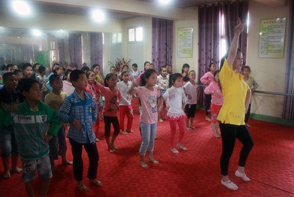 本次爱心支教队伍所教课程分为美术课、音乐舞蹈课和外语课三门课程。支教志愿者们按照所教课程交替为不同班级进行授课。授课期间,课程虽然不同,但大家对于知识的渴望一样强烈:在美术课堂上,学生们根据所给的主题和对主题的解释与引导,再结合自己的理解和想象,将自己的想法通过图画的形式展现在纸面上。画画时,同学们都十分认真,用画笔描绘出自己的想法,抒发着感情;在音乐舞蹈课堂上,学生们在志愿者演奏的小号、二胡等乐器的伴奏中,齐声合唱老师所教的歌曲。在舞蹈教室播放《小苹果》等耳熟能详的音乐,学生们跟着志愿者一遍遍学习着舞蹈动作。同学们在唱歌和跳舞时都十分投入,每一句的曲调,每一个动作学生们都认真对待,享受着音乐与舞蹈带来的愉悦;在外语课堂上,将英文单词与英文歌曲巧妙结合,新的教学形式得到学生们的积极配合,支教志愿者们成功地架起了沟通的桥梁,寓教于乐,其乐融融的课堂氛围感染到了每一个学生。在积极授课的同时,志愿者们还利用课间时间带领学生们做游戏,与学生们一起做广播体操,时间虽然很短,但与学生们的关系十分融洽,受到学生们的喜爱。
