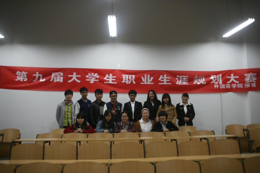 本网讯(学生记者/崔捷)4月19日,外国语学院第九届大学生职业生涯规划大赛在3号楼102教室举行,12名选手参加此次比赛。学生会主席张士博、副主席姚忆乐等人以及大一学生参加并观看本次比赛。
