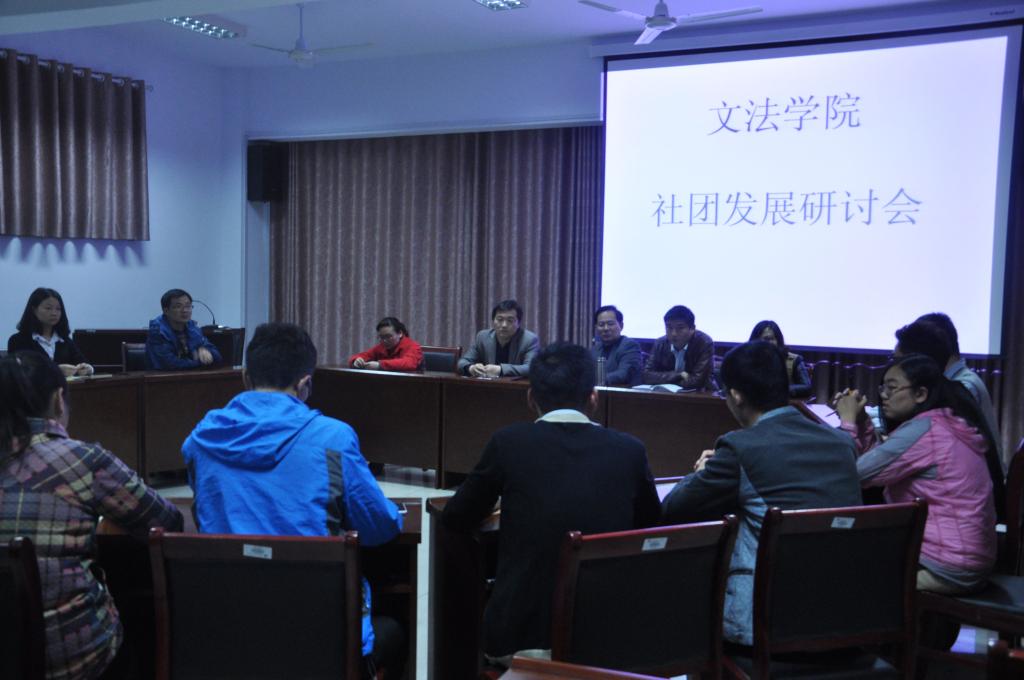 研讨会上,张金梁对社团的发展以及大学生文化节作了具体的要求和部署,时光DV 、新生杂志社、格物法学社和金话筒社团的代表干事也分别讨论了各自社团的发展方向,存在的问题并且提出了各自的解决方案。徐书记对社团各代表提出的现存问题给出宝贵意见,并强调社团的发展要格外重视,并全力支持,为其创造良好条件。他还说,社团文化须有深刻内容思想,取材于身边时事,在指导老师带领下,保障基本设施,提供场地、经费,顺利运行,期望各部门的成员在活动中具有责任感、奉献精神,能够提高能力,充实生活。各位老师也分别发表了自己的意见,提出相关建议。