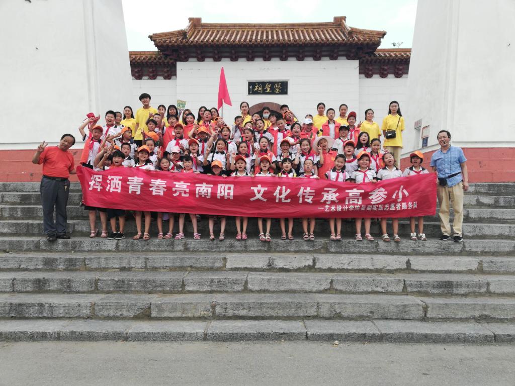 本网讯(学生记者:李虎)为深入学习贯彻党的十九大精神和习近平总书记系列重要讲话精神,努力营造“双创双建”工作的浓厚氛围。6月27至29日,艺术设计学院暑期社会实践队前往南阳市府衙博物馆、汉画馆、医圣祠进行“挥洒青春亮南阳,文化传承高参小”主题文化宣讲社会实践活动。共60名志愿者参加。