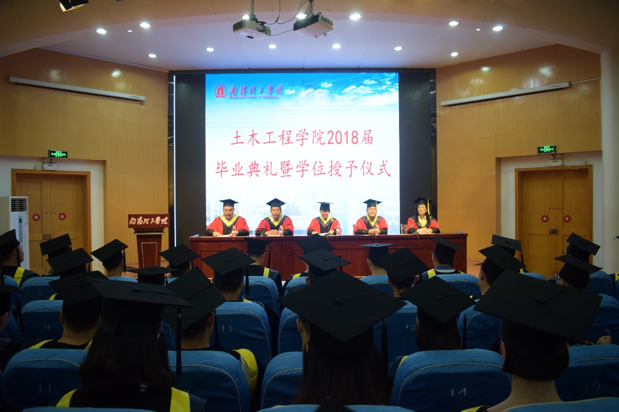 伴随着雄壮的国歌声,学位授予仪式正式开始。土木工程学院院长陈孝珍教授宣读授予学士学位人员毕业生名单,副书记任朝斌副教授宣读了省级、校级优秀毕业生名单,院长协理马中军教授宣读了优秀毕业设计(论文)学生名单。