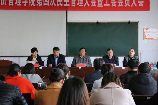 本网讯(特约记者赵明铎学生记者/周鹏程)3月26日下午,经济管理学院第四次民主管理暨工会会员大会在九号教学楼召开,副校长张世海、经济管理学院全体工会会员、部分学生代表七十余人参加会议。会议由书记张良主持。